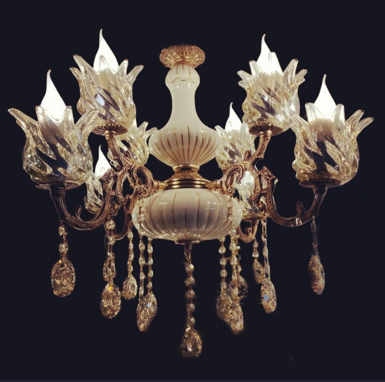 لوستر 8شعله برنجی(برنزی) سرامیکی خطی(ارسال رایگان)