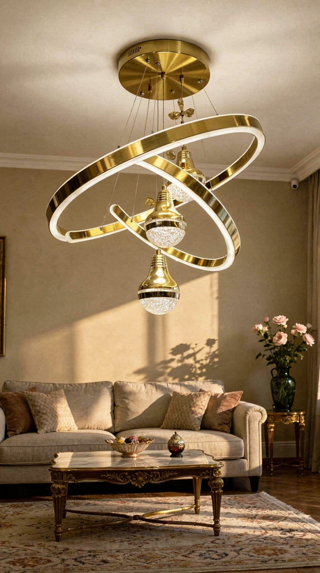 لوستر مدرن وارداتی جدیدARSIN دوحلقه ای بزرگ طلایی (ارسال رایگان)