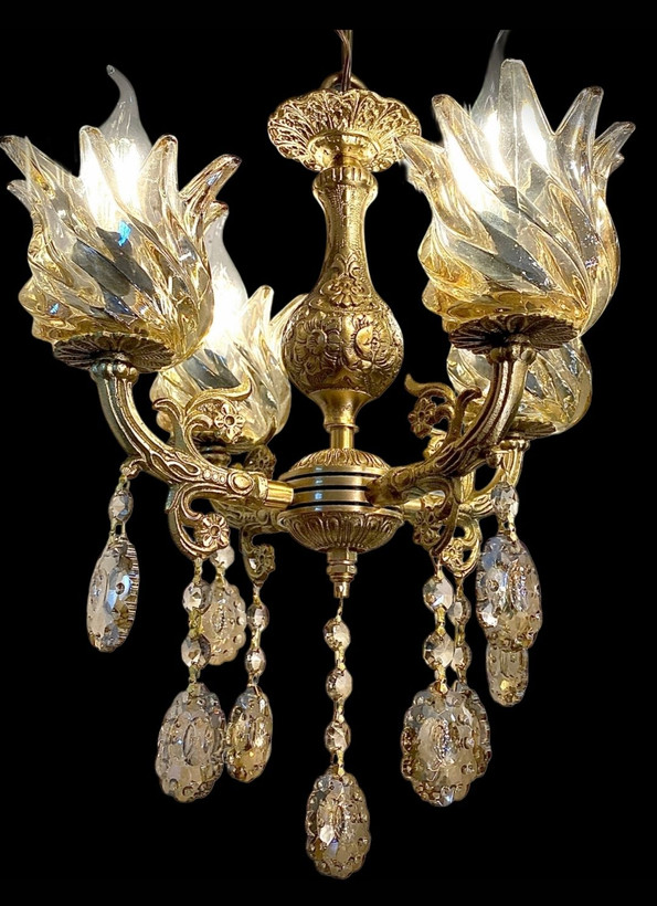 لوستر برنز برنجی 4 شاخه با میان شاخه مناسب آشپزخانه اتاق خواب و ورودی (ارسال رایگان )