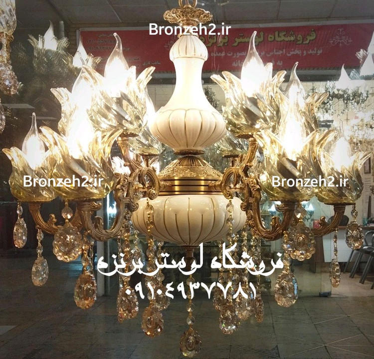 لوستر برنز برنجی 6شاخه 12 شعله سرامیکی (ارسال رایگان )خریدازتولیدیلوستربرنزه