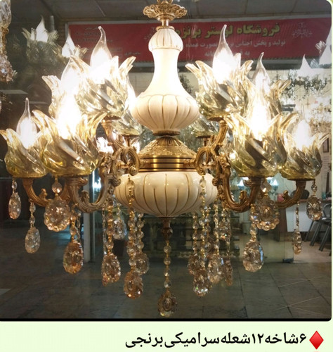 لوستر برنز 6شاخه 12 شعله سرامیکی (ارسال رایگان )خریدازتولیدیلوستربرنزه