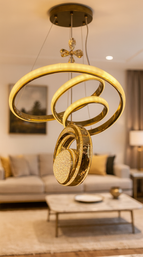 لوستر مدرن وارداتی جدیدARSIN دوحلقه ای بزرگ طلایی (ارسال رایگان)
