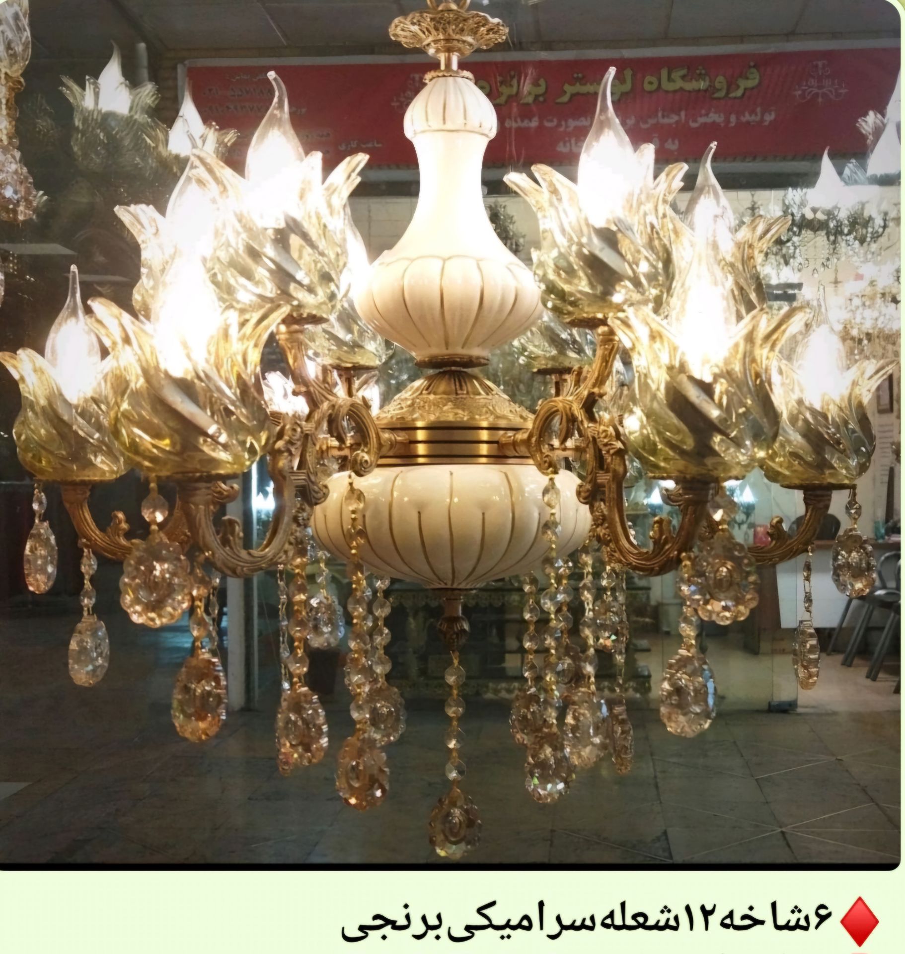 لوستر برنز 6شاخه 12 شعله سرامیکی (ارسال رایگان )خریدازتولیدیلوستربرنزه