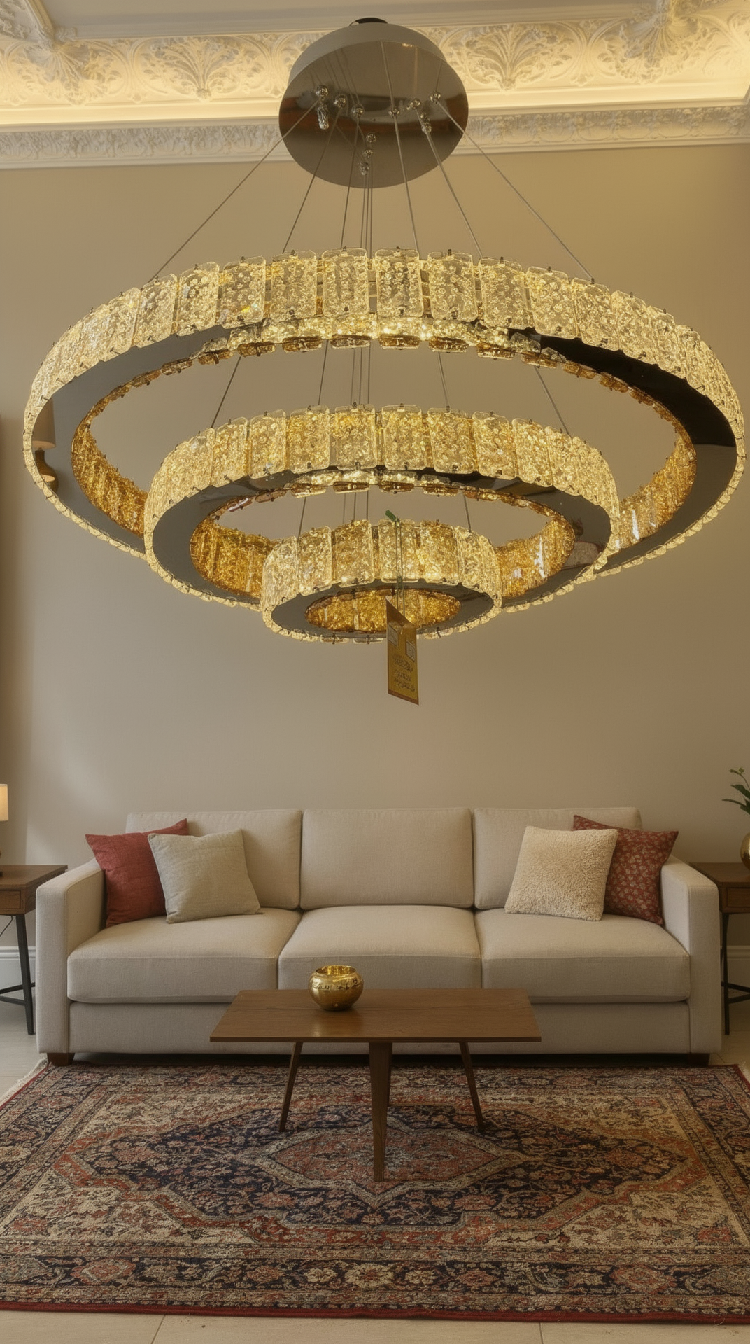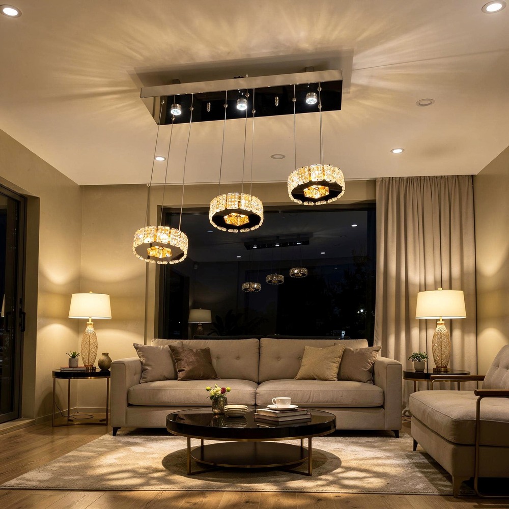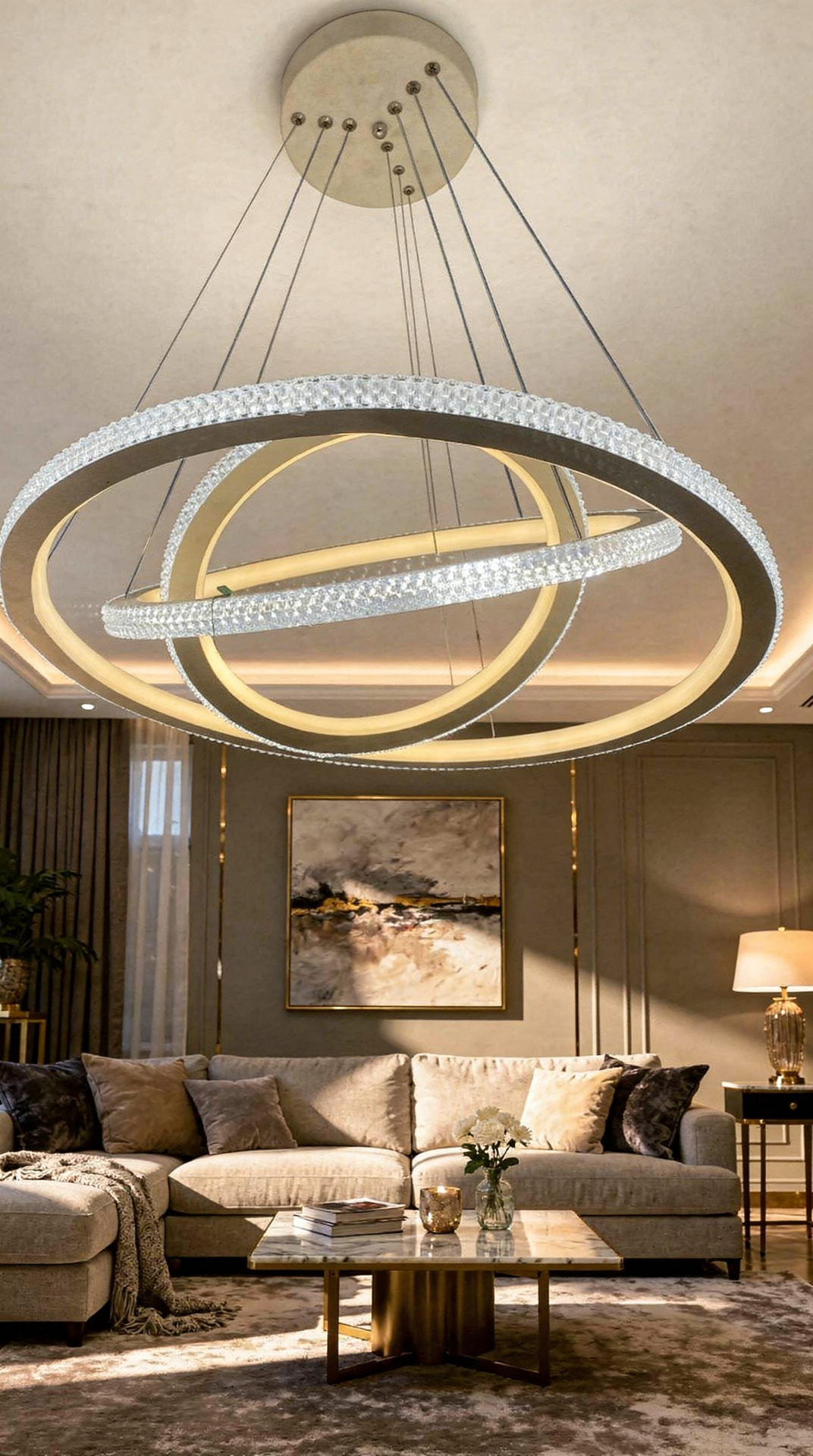 لوستر مدرن کریستالی 3حلقه ای لاینری ( ارسال رایگان)